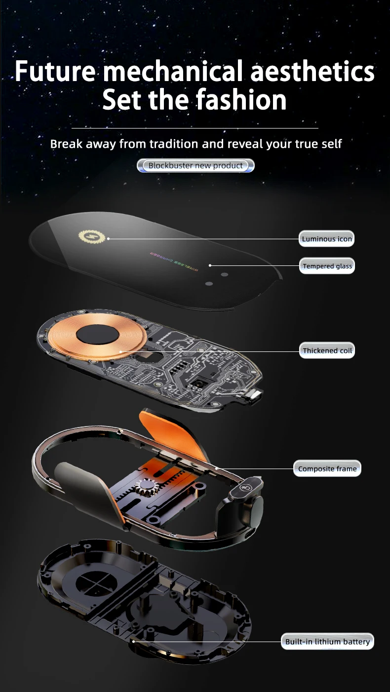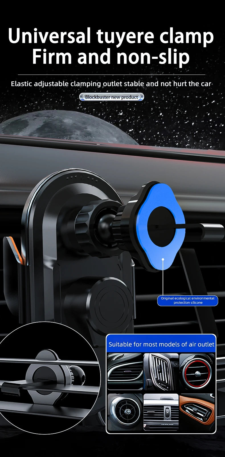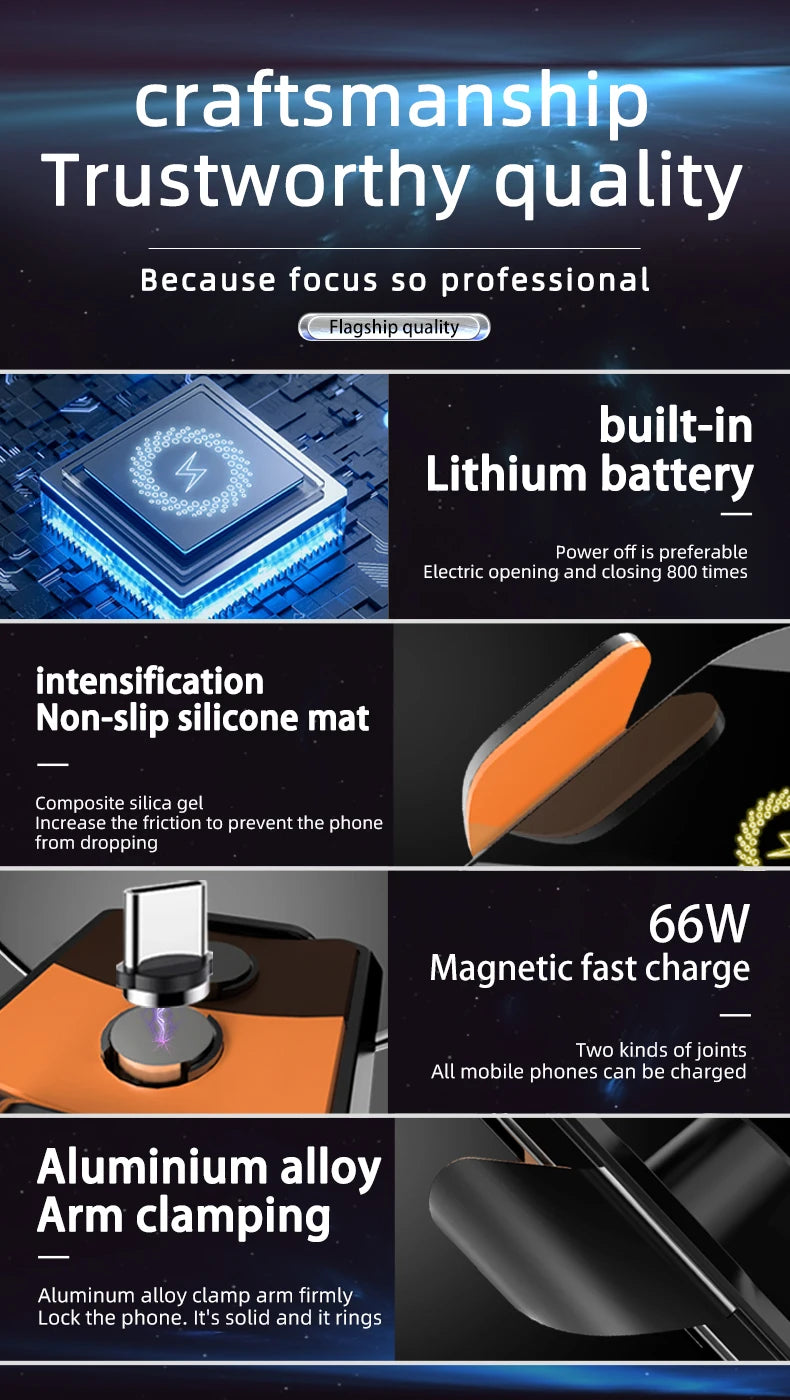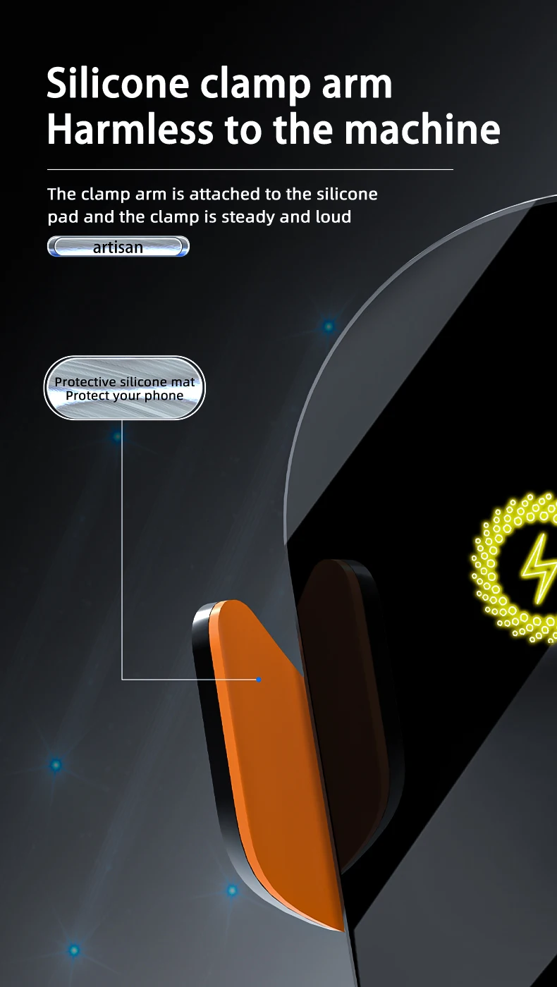 Les bras et le pied du chargeur sans fil sâouvrent automatiquement aprĂšs la connexion Ă lâalimentation et se serrent fermement lorsque vous placez votre tĂ©lĂ©phone, sans besoin dâajuster manuellement le pied.