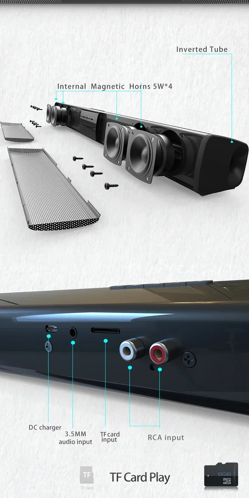 La MouZYuan Soundbar 40W combine puissance, élégance et connectivité. Conçue pour offrir une expérience audio immersive, elle diffuse un son clair et profond grâce à sa technologie Full-Range et son mode 3D Surround. Parfaite pour la maison, le bureau ou votre téléviseur, elle s’utilise aussi bien en Bluetooth qu’en connexion filaire (AUX, USB).