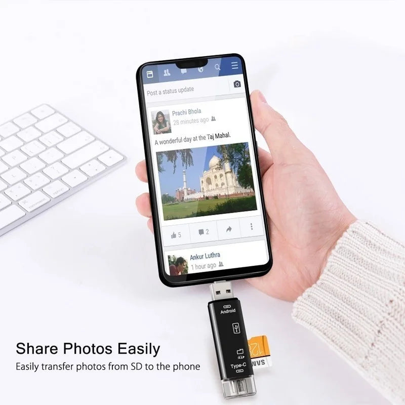 🔌 Lecteur de Cartes 5-en-1 Multifonction – USB 2.0 / Type-C / Micro USB / SD / TF