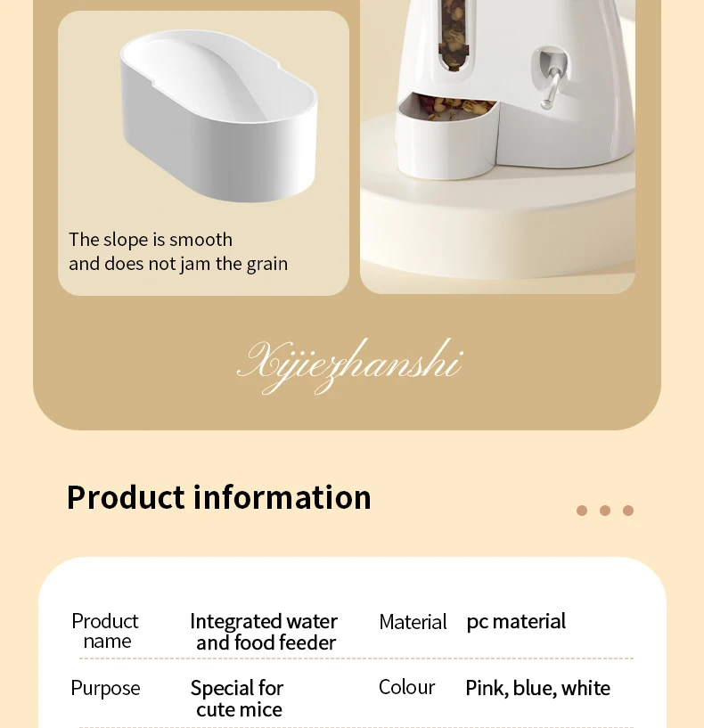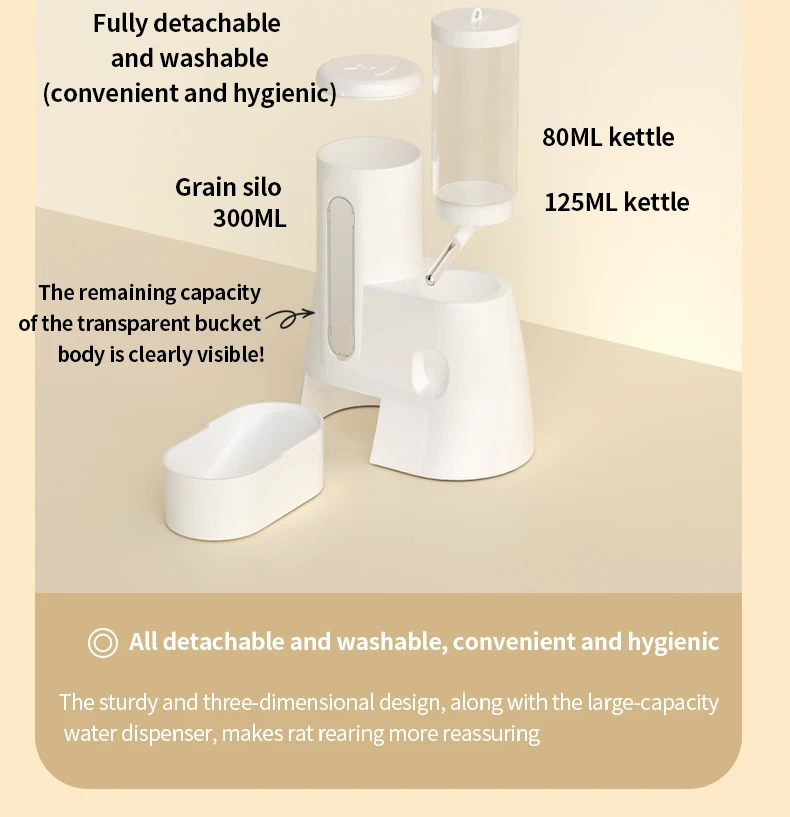 Abreuvoir automatique multifonction conçu pour offrir à la fois de l’eau propre et de la nourriture aux petits animaux. Idéal pour les hamsters, cochons d’Inde, rats, hérissons et autres rongeurs. Ce système 2 en 1 combine une bouteille d’eau et un bol de nourriture, garantissant une alimentation pratique, hygiénique et sans gaspillage.