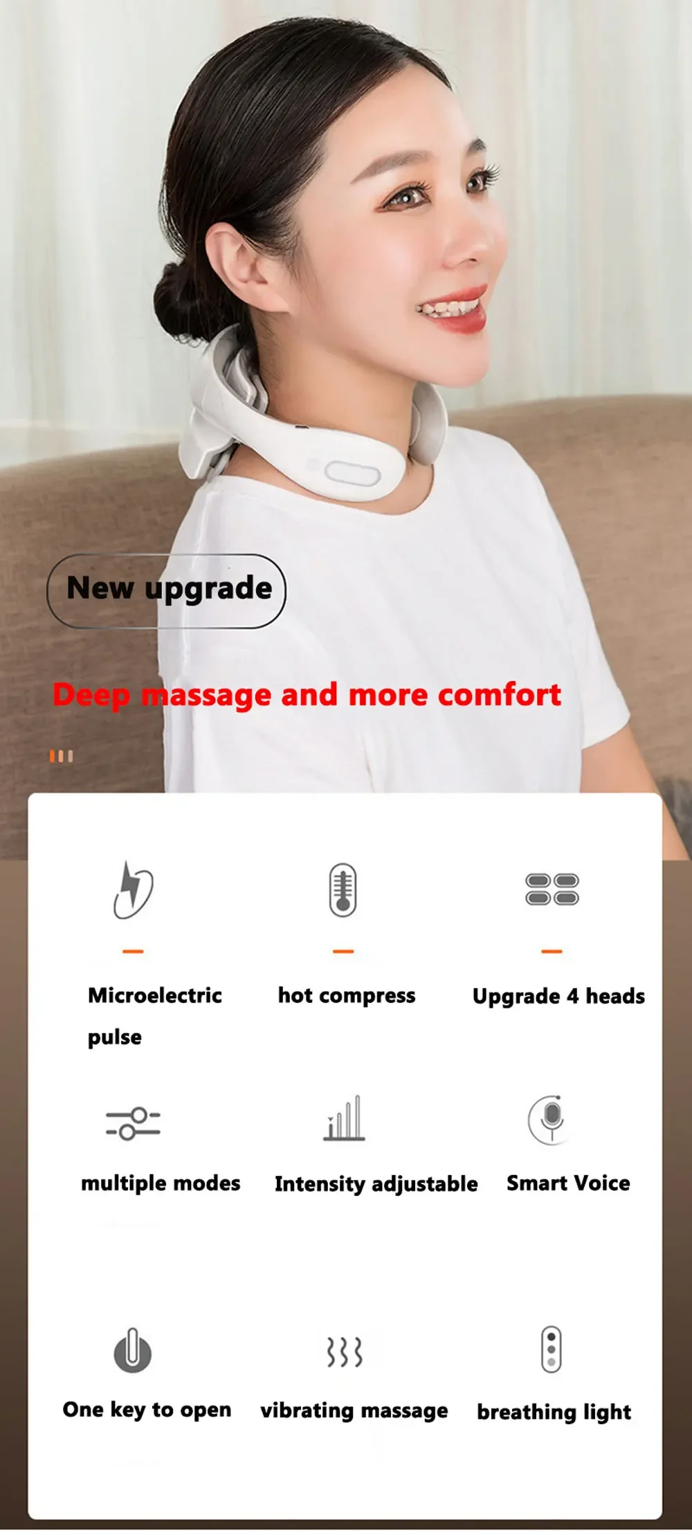 "Appareil de massage cervical intelligent – Massage électrique à impulsions basse fréquence, physiothérapie, relaxation, compresse chaude et massage par vibration."