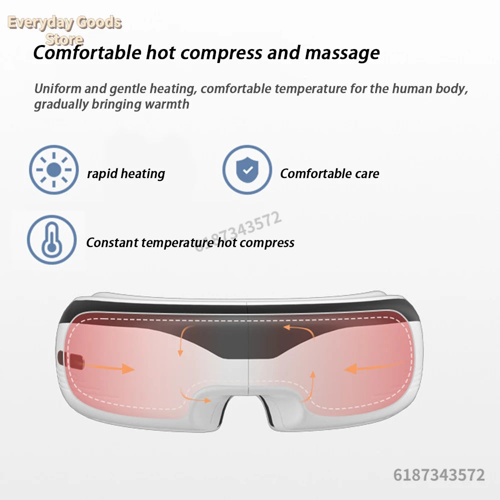 "Appareil de massage oculaire intelligent à température constante – Sans fil, Bluetooth, musique, massage 3D par airbags, soulage la fatigue des yeux."