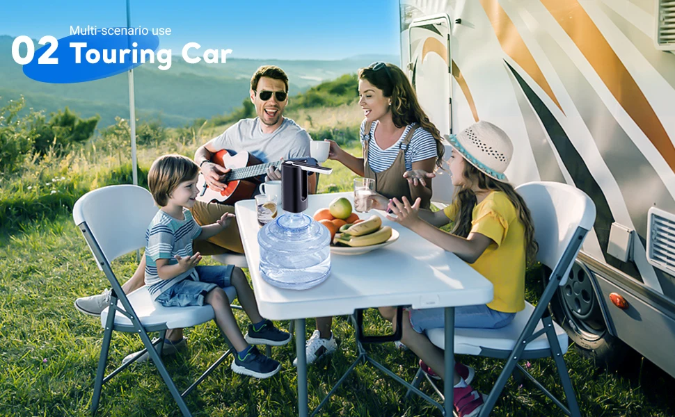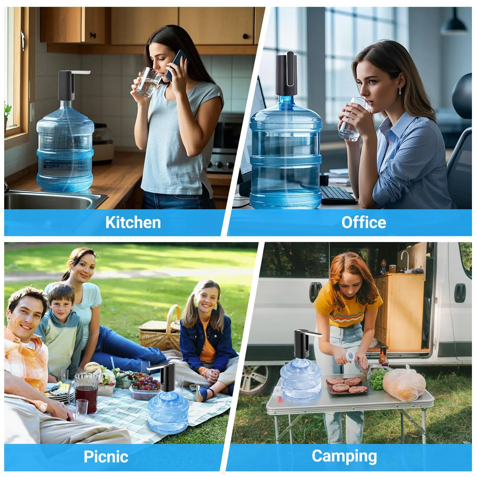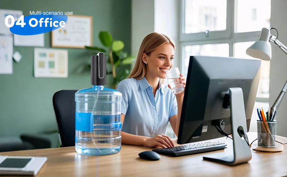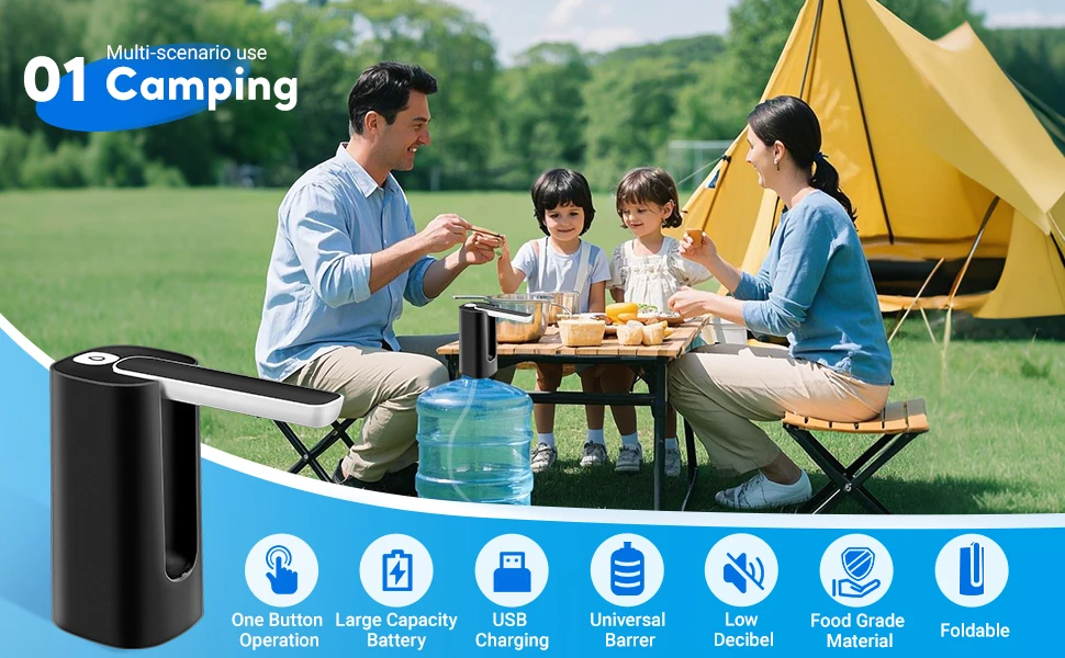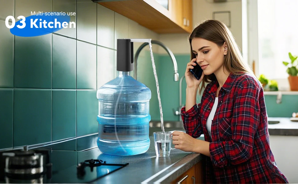 - Électrique et automatique : Distribue l’eau en appuyant simplement sur un bouton.