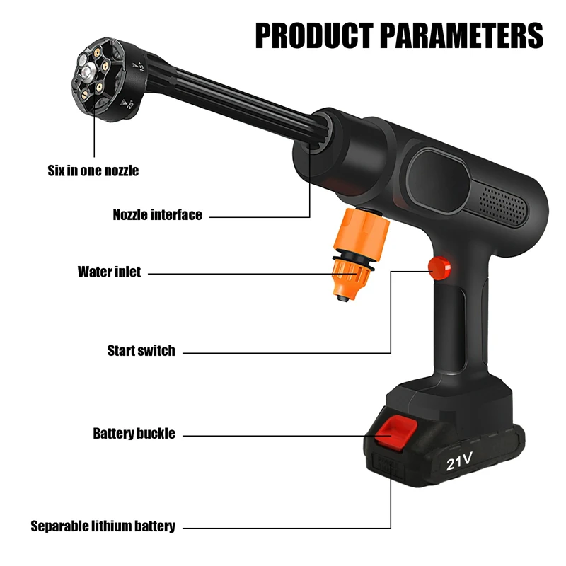 - Nom du produit : 95Bar Cordless Electric High Pressure Washer 800W 6-in-1