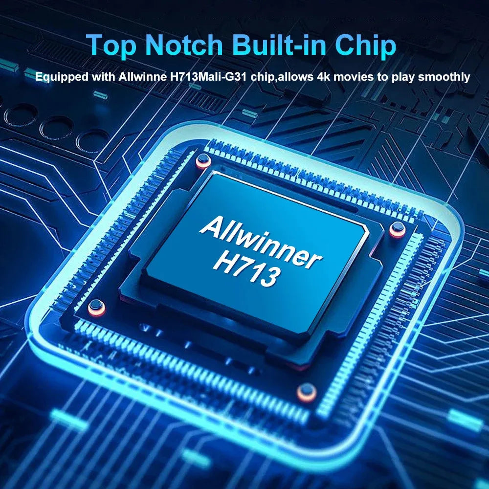 Spécifications optiques Système : Android 11 Wi-Fi : 2,4 GHz/5 GHz Technologie d’affichage : LCD Source lumineuse : LED, durée de vie : 50 000 heures Luminosité : 300 ANSI lumens Méthode de mise au point : électronique (réglable par télécommande) Rapport de contraste : 10 000:1 Résolution : 1280 x 720p native, prise en charge maximale : 1080p et 4K Format d’image : 16:9 Rapport d’image du projecteur : 1,2:1 Dimensions de projection : 40-130 pouces Distance de projection : 1,2-4 m Alimentation : CA 90-260 V/50-60 MHz, 110-220 V Haut-parleur : 3 W Bluetooth : BT5 Produit Dimensions : 134 x 119 x 200 mm Processeur : Allwinner H713 ARM Cortex-A53 quadricœur GPU : Mali-G31 compatible avec OpenGL ES3.2, Vulkan 1.1 et OpenCL2.0 Fichiers image : JPG, BMP, PNG, mise à l’échelle prise en charge Fichiers vidéo : Décodage plein format, y compris HEVC/VP9/AVS2/AVC 4K à 60 ips et MPEG1/MPEG2/AV1 1080p à 60 ips, etc. Notre projecteur prend en charge le décodage vidéo 4K, mais la résolution vidéo maximale est de 1280 x 720p.